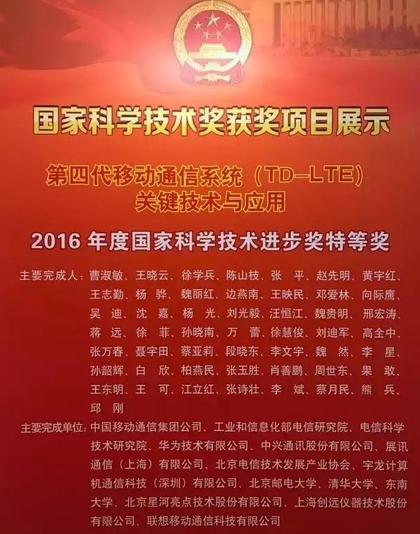 2017年1月9日上午,中共中央、國(guó)務(wù)院在北京人民大會(huì)堂隆重舉行國(guó)家科學(xué)技術(shù)獎(jiǎng)勵(lì)大會(huì)。黨和國(guó)家領(lǐng)導(dǎo)人習(xí)近平、李克強(qiáng)出席大會(huì)并為獲獎(jiǎng)單位頒獎(jiǎng)。大會(huì)上“第四代移動(dòng)通信系統(tǒng)(TD-LTE)關(guān)鍵技術(shù)與應(yīng)用”項(xiàng)目榮獲2016年度國(guó)家科學(xué)技術(shù)進(jìn)步獎(jiǎng)特等獎(jiǎng)。這標(biāo)志著我國(guó)移動(dòng)通信科技創(chuàng)新和產(chǎn)業(yè)發(fā)展登上…