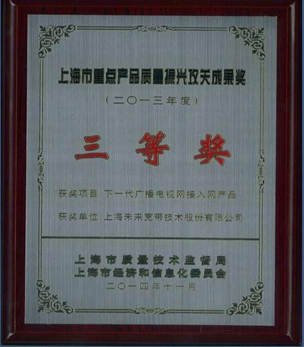 未來寬帶 榮獲上海市重點(diǎn)產(chǎn)品質(zhì)量攻關(guān)成果獎(jiǎng)