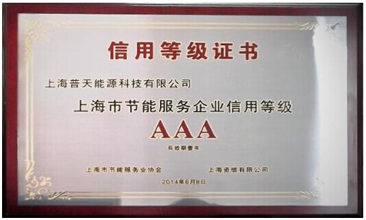 上海普天能源獲上海市節(jié)能服務(wù)企業(yè)AAA信用等級(jí)稱號(hào)