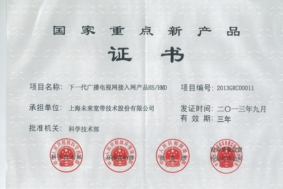 上海未來(lái)寬帶股份主要產(chǎn)品榮獲“國(guó)家重點(diǎn)新產(chǎn)品”稱(chēng)號(hào)
